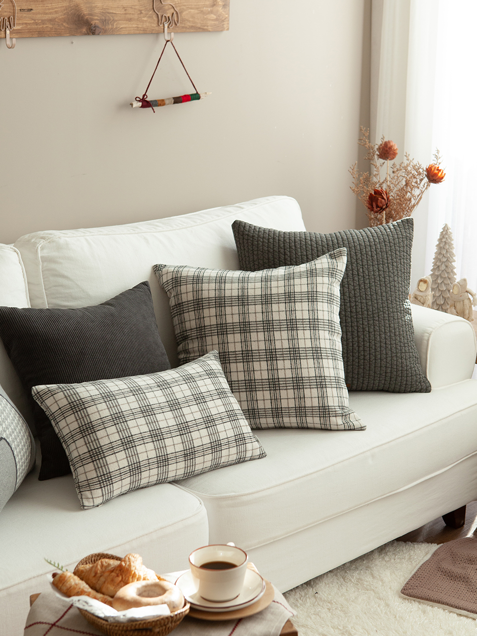 핀체크 쿠션커버 [화이트]