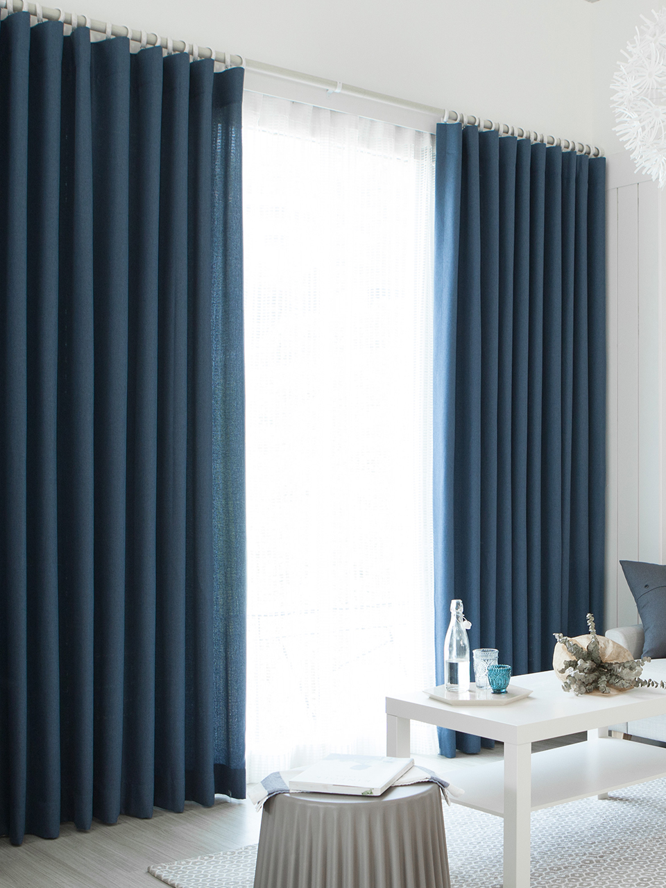 [리퍼브-샘플] 코펜하겐 버튼업 콤비커튼 [네이비] - 민자형 [2폭*247(하단x)/1조]