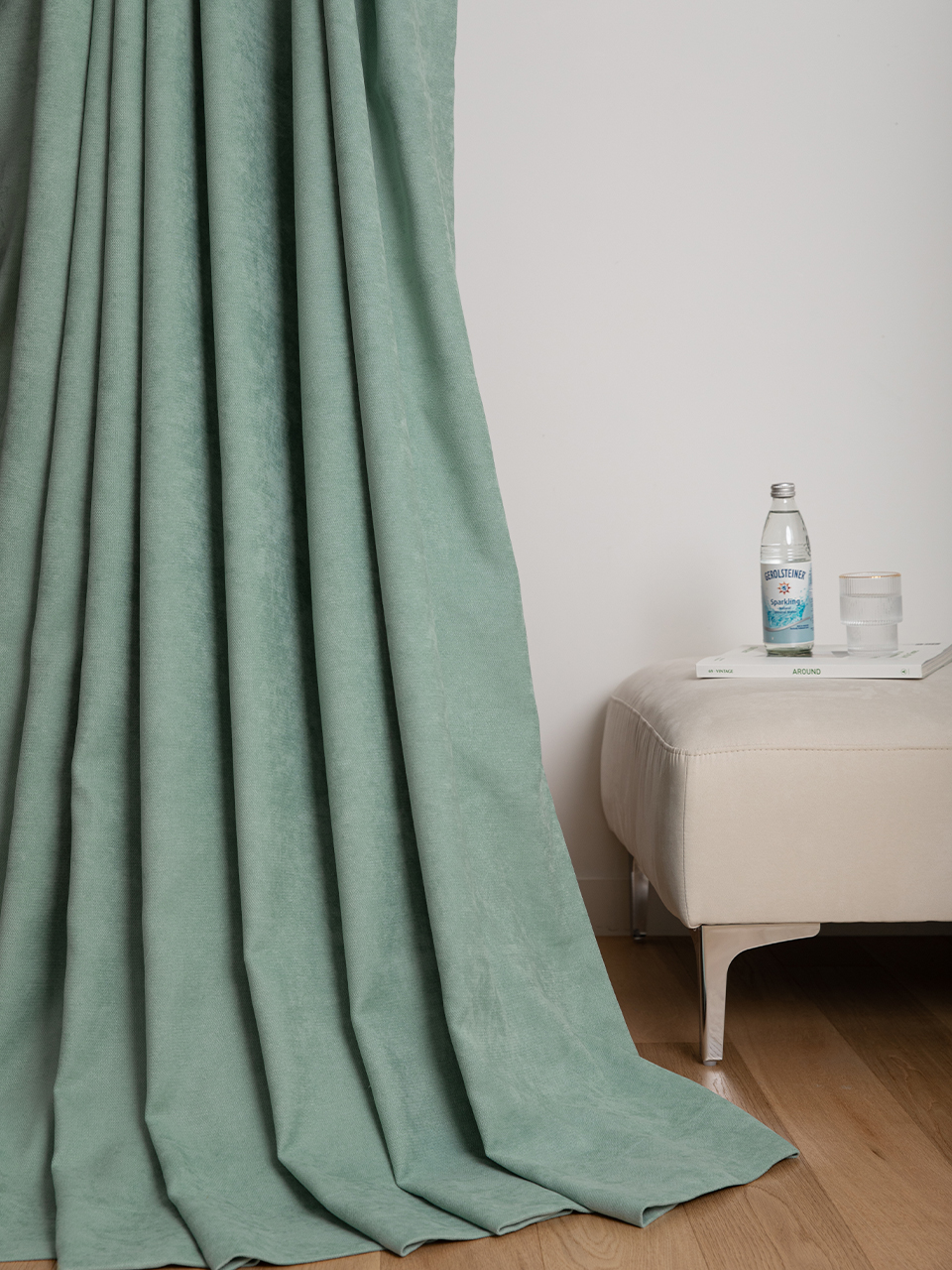[리퍼브-촬영맞춤] 센티멘탈 형상기억 커튼 [세이지민트] - 민자형 [3폭*246/1조]